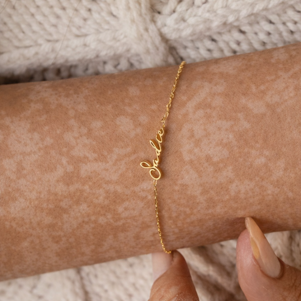 Le bracelet Eléa met en valeur un prénom personnalisé élégant, pour un bijou unique et chargé de sens. Conçu en acier inoxydable premium avec finition or 18K (PVD) ou argent, il résiste à l’eau et se porte facilement tous les jours.